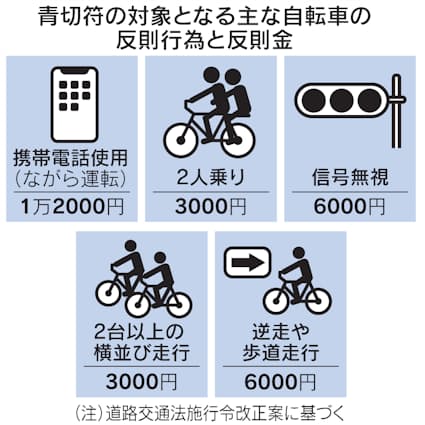 そこで、自転車も車両の仲間として、交通ルールの遵守を図るため、16歳以上の者による自転車の一定の交通違反に対して、青切符を導入することとなりました。