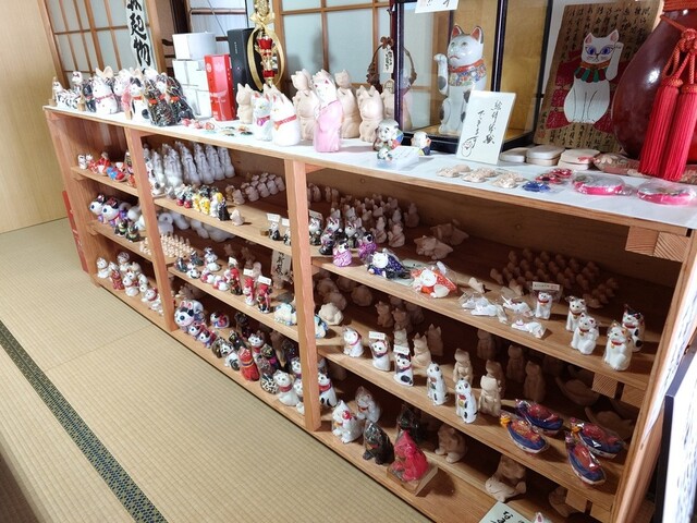 岡山県道47号線沿いの古民家を改装、猫の土人形作家である店主が作家活動をしながら、全国から集めた招き猫の展示・カフェのお店「瀬戸の古猫庫」をされています。